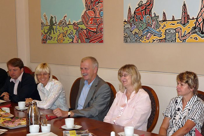 Zu diesem Frühstückssnack hatte der Unternehmer Bernd Jurke (u.a. Jurke Großküchen und Geschäftsführer des Schlossrestaurant Sondershausen - Bildmitte) eingeladen. So kamen zum Beispiel Vertreter des Stadtmarketings Bad Frankenhausen und Nordhausen, aber auch aus dem Tabakspeicher, der Traditionsbrennerei und der Kulturverwaltung mit Theater Nordhausen und dem Schlossmuseum Sondershausen.