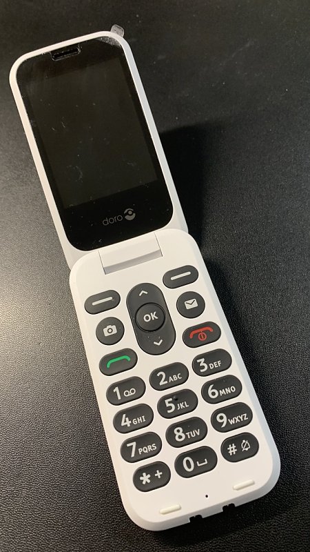 Verkaufe Seniorenhandy Doro - 2820. 4G-Klapptelefon ohne Vertrag - Große Tasten mit Sprachausgabe - Kamera - Bluetooth - Notruftaste - Inklusive Ladestation - Blau/WeißMarke Doro