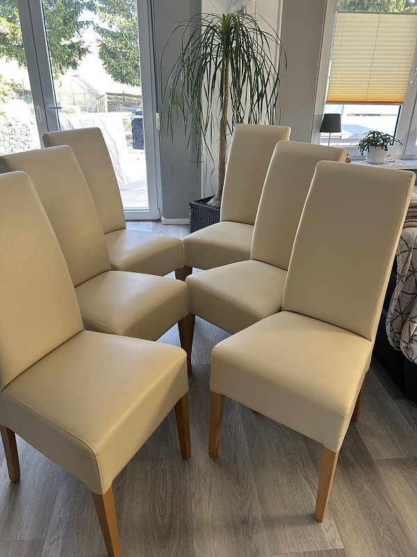 6 Esszimmer Stühle zu verkaufen. Die Stühle sind sehr gut erhalten und makellos. Oberfläche ist Kunstleder.