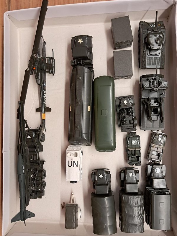 Biete Sammlung an Militärfahrzeugen (US, UN) von Roco, Wiking und Brekina (Hersteller vom Hubschrauber unbekannt) im Maßstab 1:87, passend für H0,