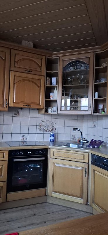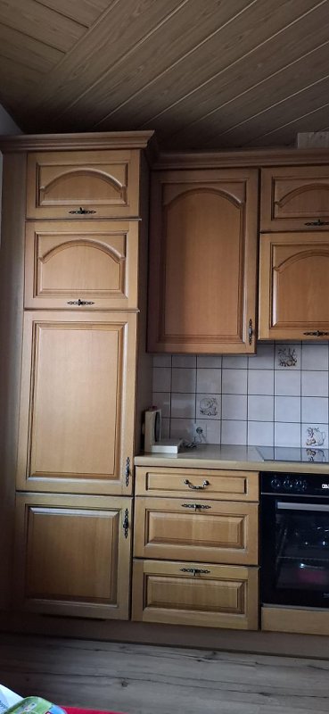Verschenke Einbauküche Echtholz Eiche hell mit Geräten