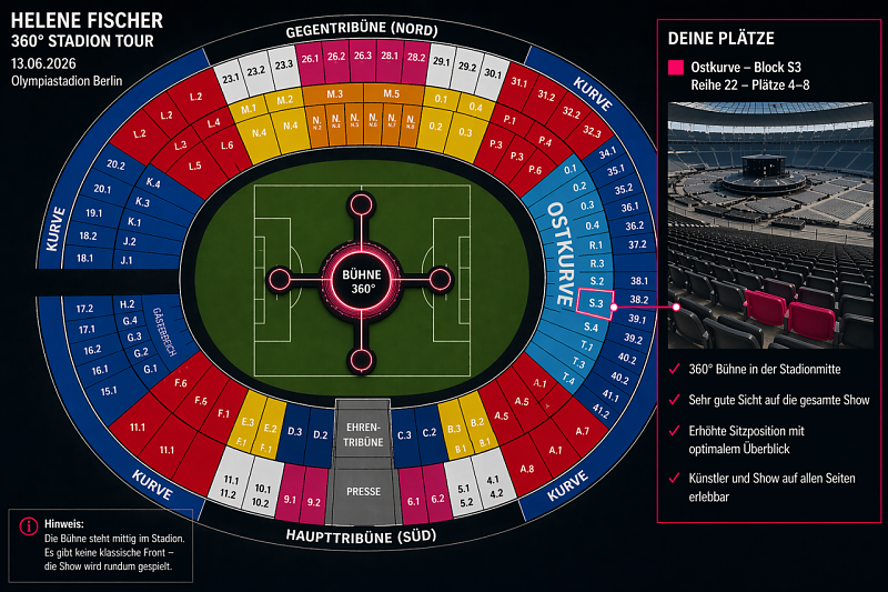 Biete: Helene Fischer Tickets Berlin 13.06. – 5 Plätze Ostkurve (Top Sicht!)