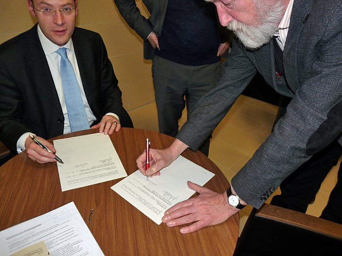 Der Geschäftsführer der Glückauf Sondershausen Entwicklungs- und Sicherungsgesellschaft mbH (GSES), Prof. Dr-Ing. Jan-Henrich Florin, der Intendant und Geschäftsführer des Theater Nordhausen/Loh-Orchester Sondershausen GmbH, Lars Tietje, und der Direktor der Landesmusikakademie Thüringen, Prof. Dr. Eckart Lange, unterzeichneten eine Vereinbarung zur Förderung überwiegend junger Komponisten, und der Generalmusikdirektor des Loh-Orchester, Markus L. Frank, wird das Ganze mit seinen Musikern zu Gehör bringen.