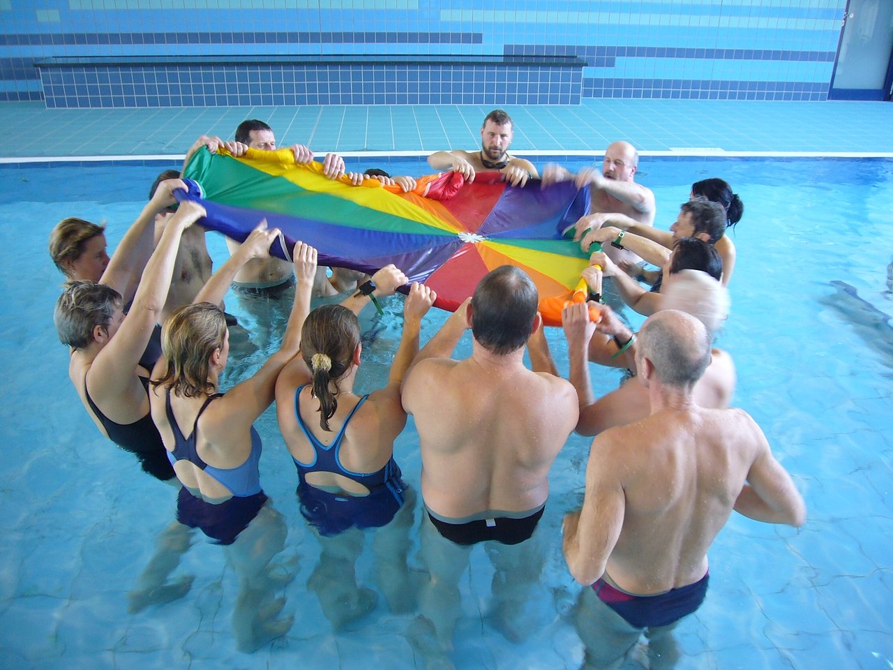 Im zweiten Teil der Veranstaltung in der Schwimmhalle am Johannesplatz wurden den Schwimmlehrern praktische Anregungen für eine differenzierte Unterrichtsgestaltung gegeben. Insbesondere Übungen für den Umgang mit ängstlichen Kindern sowie das behutsame Herangehen an das Element Wasser und das freudbetonte Schwimmen lernen für alle Kinder standen im Mittelpunkt des Praxisteils.