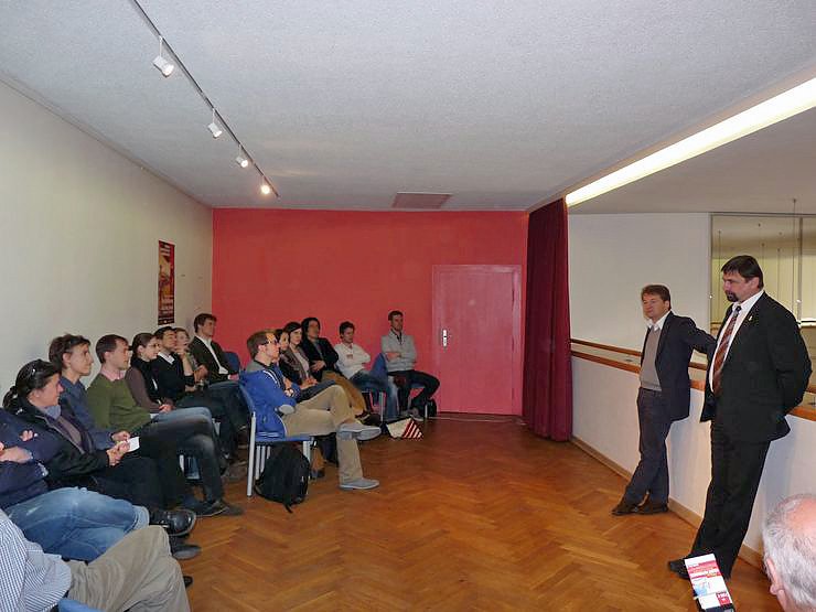 Es ist schon zur Tradition geworden, dass Lars Tietje, Intendant und Geschäftsführer der Theater Nordhausen/Loh-Orchester Sondershausen GmbH (2.v.r.) und Sondershausens Bürgermeister Joachim Kreyer die Künstler begrüßten. Heute geschah das im Haus der Kunst, der Spiel- und Probenstätte des Lohorchester. Beide konnte auf die lange musikalische Tradition von Sondershausen verweisen.