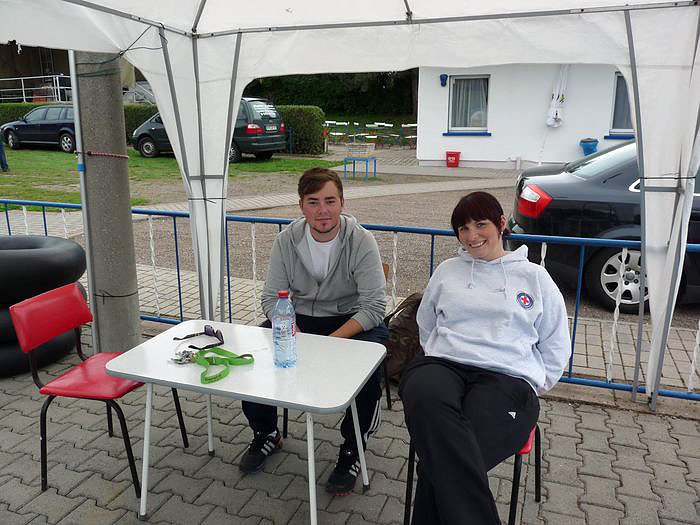 Alte Bekannte, wie dieser Schwimmer, der jedes Jahr von der Ostseeküste bis Großfurra kommt, wird natürlich per Handschlag begrüßt (Bildergalerie). Auch wenn jede Menge Schwimmer da sind. Trotzdem werfen die Rettungsschwimmer mehr als einen Blick auf die Anlage, damit keiner untergeht.