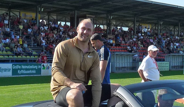 Autor: khhEs ist schon Tradition, dass die Spitzenathleten mit einem Cabrio vor die Tribüne gefahren und dem Publikum vorgestellt werden. Bei Robert Harting musste man das nicht mehr. Der aktuelle Olympiasieger im Diskuswurf vom SCC Berlin ist ja schließlich nicht nur auch schon Welt- und Europameister gewesen, sondern auch Stammgast auf dem Göldner und bekannt wie ein "bunter Hund. Seine Siegerweite mit 65,92 m blieb erwartungsgemäß unter der 70-Meter-Marke, die er dieses Jahr schon geknackt hatte.