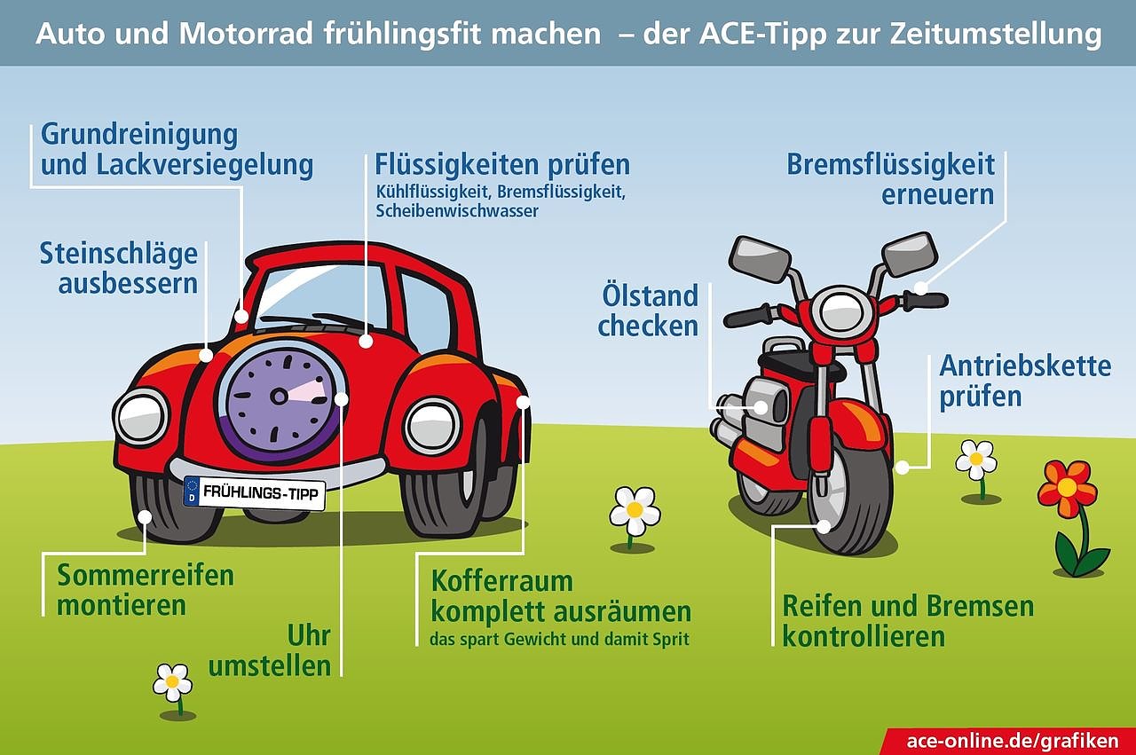 Der Winter ist fast vorüber und nicht nur im Haus sollte ein Frühjahrsputz auf dem Plan stehen. Der ACE Auto Club Europa Kreisclub Nordthüringen gibt in seinem neuen Ratgeber nützliche Tipps, was alles zu beachten ist, um Auto und Motorrad frühlingsfit zu machen. Denn nicht selten wird erst im Frühjahr sichtbar, welche Spuren der Winter hinterlassen hat...