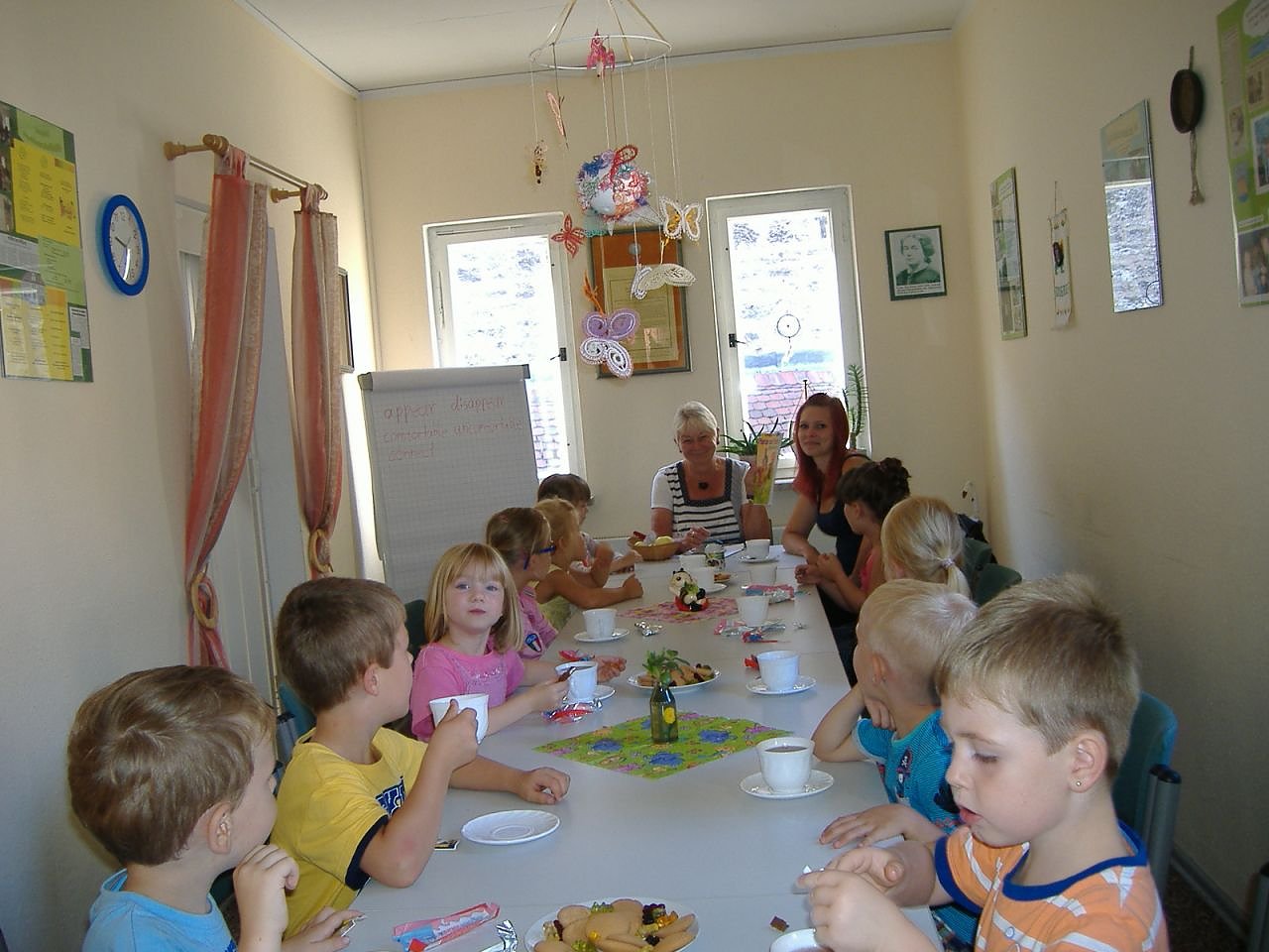 Unter dem Motto Der Natur auf der Spur hat Lesepatin Irmgard Schwabe den Kindern die Geschichte von den Erlebnissen der Wildkatze im Hainich vorgelesen. Anschließend wurden von den Kindern noch Kirmeslieder gesungen, was ja am Kirmesmontag in Mühlhausen nicht fehlen sollte.