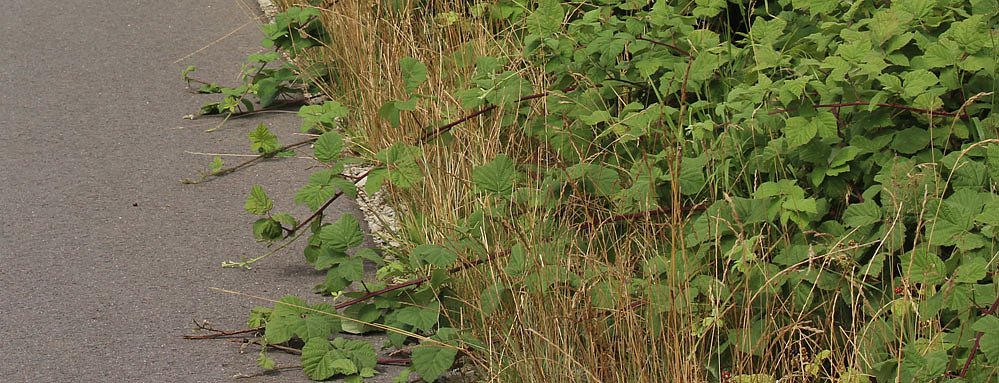 Es sieht nicht nur unschön aus, wenn das Unkraut so wuchert. Man muss auch an den Sicherheitsaspekt denken. Wer öfter den UWR befährt wird sicher bereits öfter gesehen haben, wie Pärchen schwatzend nebeneinander fahren. Auf der langen Geraden nicht das Problem. Wäre das im Bild oben eine Rechtskurve, würde es ganz schnell zu einer Sichtbeeinträchtigung kommen, wenn dann noch nebeneinander gefahren wird, kann es schnell mal krachen.