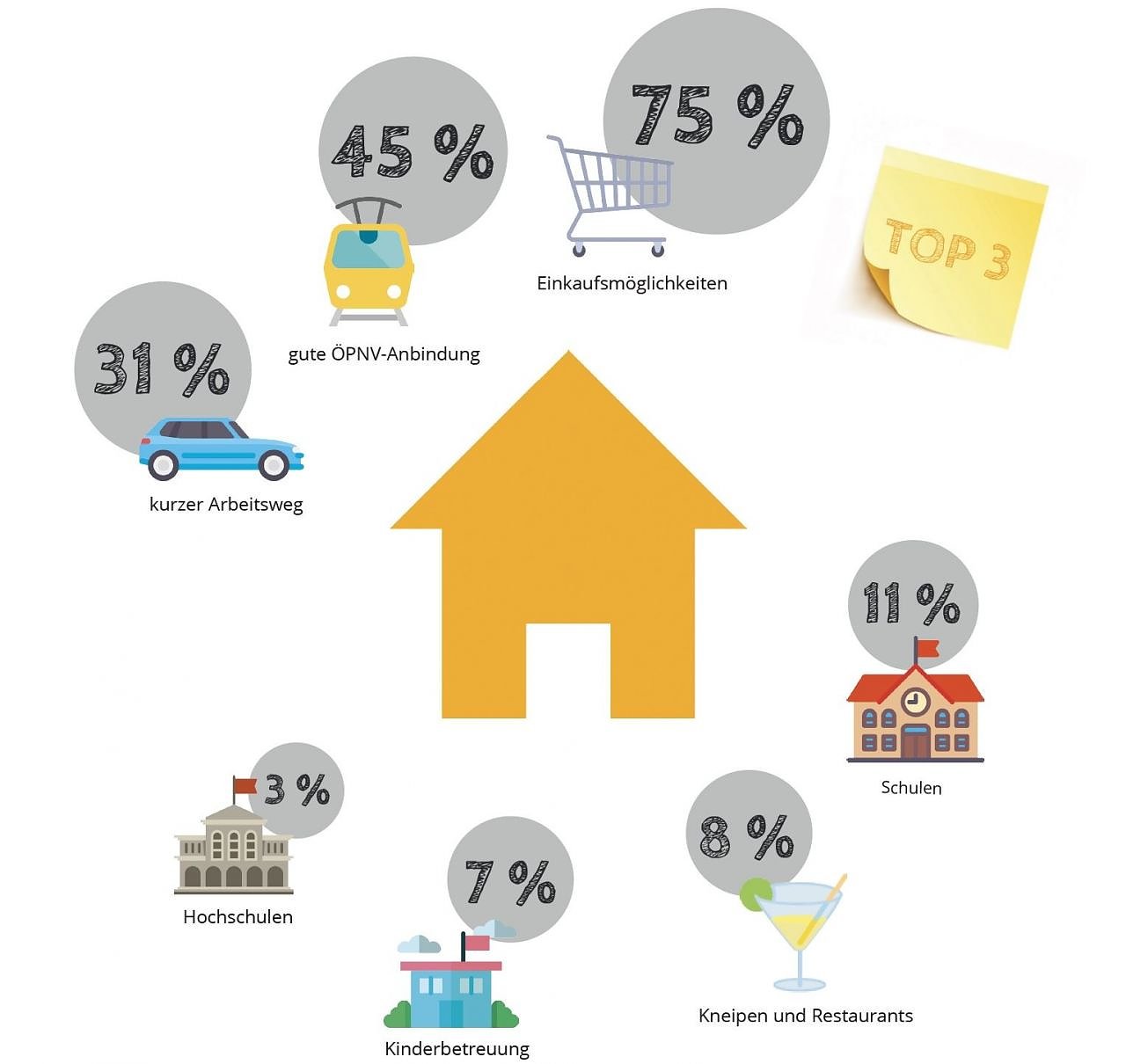 - kurzer Weg in die Arbeit: 31 Prozent