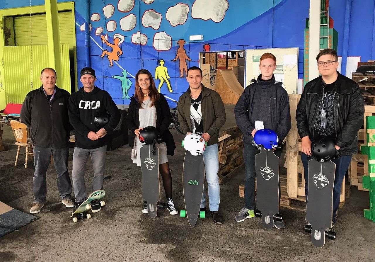 Der Verein erhielt von der Firma Chilli pro Scooters (fun4you) eine Materialspende in Form von Long- und Skateboards sowie Schutzhelme. Diese Spende wollten Sie gern an bedürftige Kinder weiterreichen.
