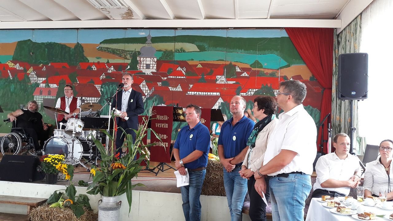 Landrat Harald Zanker unterstütze das Fest mit 1000 EUR und übergab vor Ort einen symbolischen Scheck an die Vorsitzende der Landseniorenvereinigung Christa Runge.