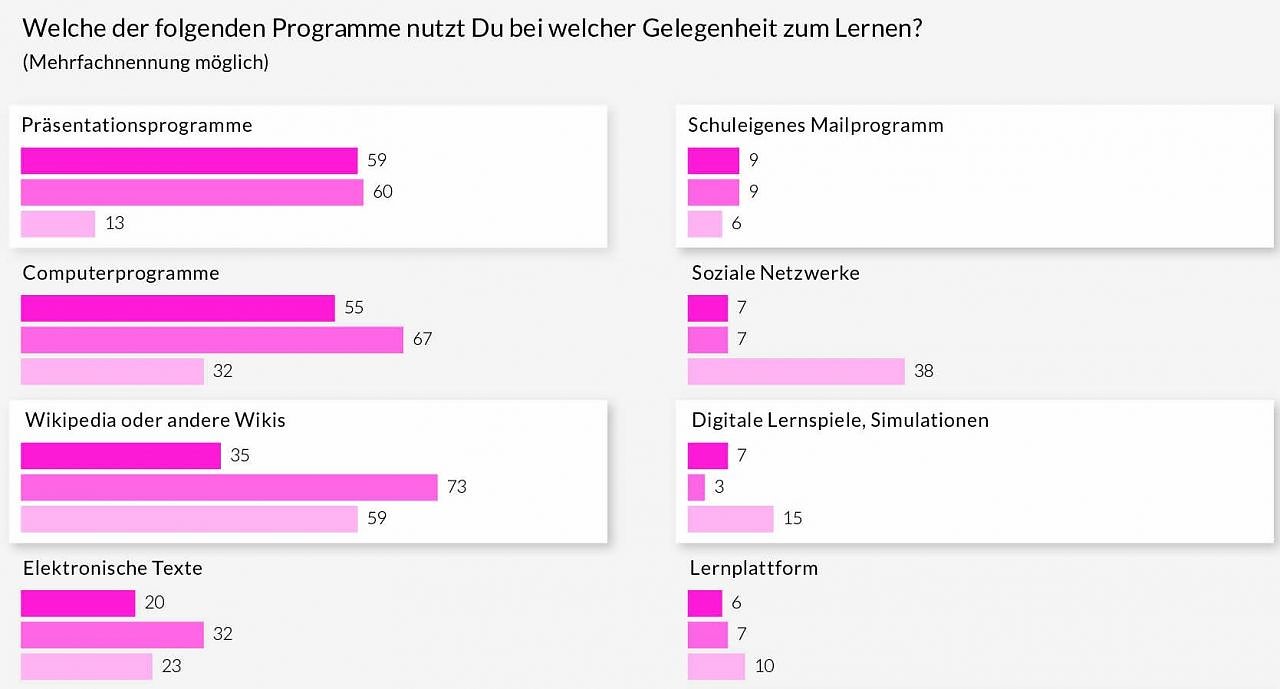 Ganz anders bewerten Schüler selbst ihren digitalen Lernerfolg: 80 Prozent bestätigen, dass sie durch Lernvideos, Internetrecherche oder moderne Präsentationsprogramme aktiver und aufmerksamer seien und wünschen sich einen vielseitigeren Einsatz digitaler Medien.