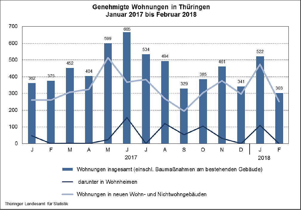 Genehmigte Wohnungen in Thüringen Januar 2017 bis Februar 2018 (Foto: Thüringer Landesamt für Statistik)