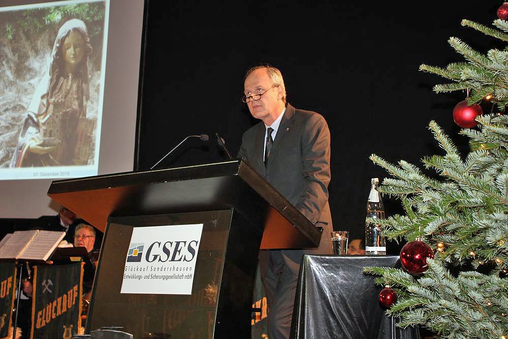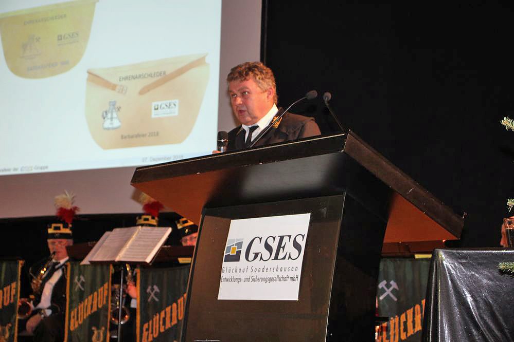 Grußworte sprachen Sondershausens Bürgermeister Steffen Grimm und Günter Otto vom Bergmannsverein Sondershausen. Beide würdigten das Wirken der GSES als segen für Sondershausen. Grimm: Bergmännische Tradition gehört zu Sondershausen, Bergbau gehört zu Sondershausen.
