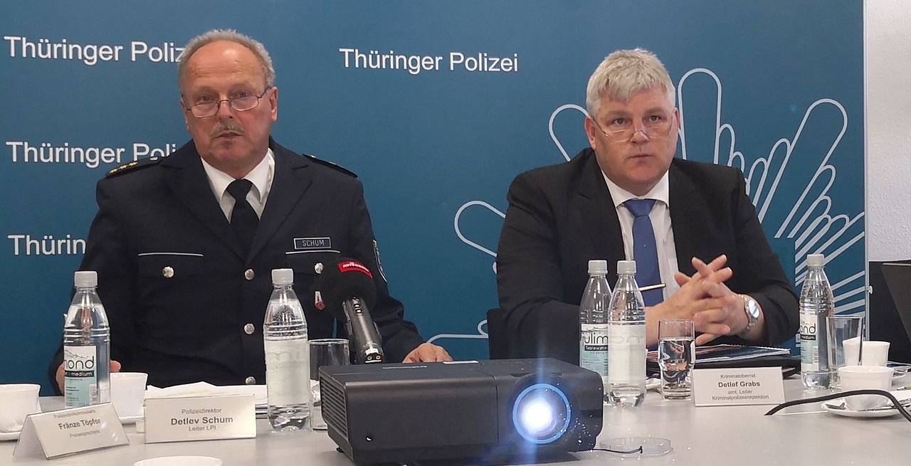 Polizeidirektor Detlev Schum (links), Kriminaloberrat Detlef GrabsMit einem Anteil von über einem Viertel aller registrierten Straftaten nimmt der Diebstahl nach wie vor eine exponierte Position ein, obwohl der Anteil am Gesamtstraftatenaufkommen in Nordthüringen um 18,5 Prozent auf 5.506 Delikte zurückgegangen ist.
