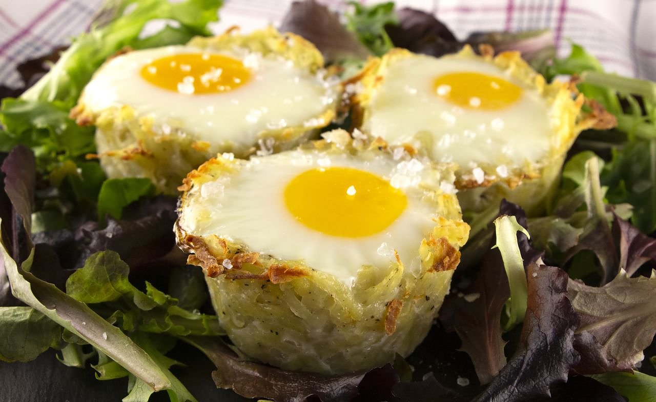 Wer die Kartoffelnester gerne nachkochen möchte, findet das Rezept unter folgendem Link: https://www.die-kartoffel.de/suche/rezepte/gebackene-eier-im-roesti-nest.