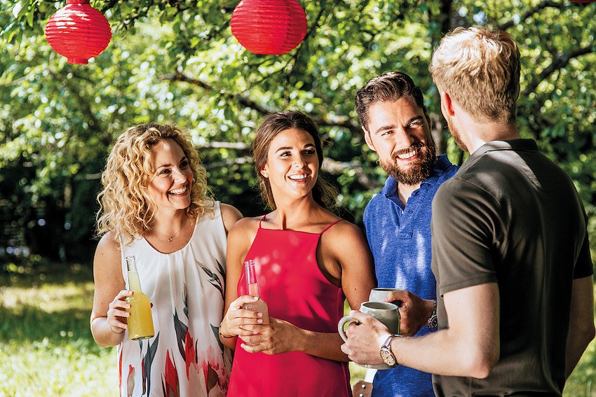 Im Schnitt verbringen Deutsche 8,9 Stunden je Woche mit Freunden. Mit durchschnittlich 11,6 Stunden je Woche verbringen Singles fast doppelt so viel Zeit mit Freunden wie Verheiratete (6,3 Stunden je Woche). Offenbar nimmt die gemeinsam verbrachte Zeit mit Freunden nach der Eheschließung noch einmal ab: In einer Partnerschaft lebende Befragte ohne Ehering verbringen immerhin 8,6 Stunden je Woche mit ihren Freunden. Bei Befragten mit Kindern bleiben für die Freunde im Schnitt lediglich 5,3 Stunden je Woche übrig, Befragte ohne Kinder verbringen im Schnitt fast doppelt so viel Zeit, nämlich 9,9 Stunden, mit Freunden. Betrachtet man die Deutschlandkarte, so fällt auf, dass Menschen im Osten mit 10 Stunden je Woche am meisten Zeit mit Freunden verbringen, wohingegen Befragte aus dem Süden mit 7,7 Stunden am wenigsten Zeit für Freunde aufwenden. Im Norden und Westen sind es jeweils circa 9 Stunde je Woche. Neben dem Beziehungsstatus und der Region unterscheidet sich die gemeinsame Zeit mit Freunden auch je Alter: Im Alter zwischen 18 und 24 Jahren (11,2 Stunden je Woche) und 50 und 59 Jahren (10, 2 Stunden je Woche) verbringen die Befragten am meisten Zeit mit ihren Freunden. Im Alter von 40 und 49 Jahren haben Befragte am wenigsten Zeit (7,2 Stunden je Woche), gefolgt von den 30- bis 39-Jährigen mit 7,5 Stunden je Woche. Unabhängig davon, wie viel Zeit sie mit Freunden verbringen, sind sich fast alle Befragten einig (96 Prozent), dass gemeinsame Zeit die Freundschaft verbessert.