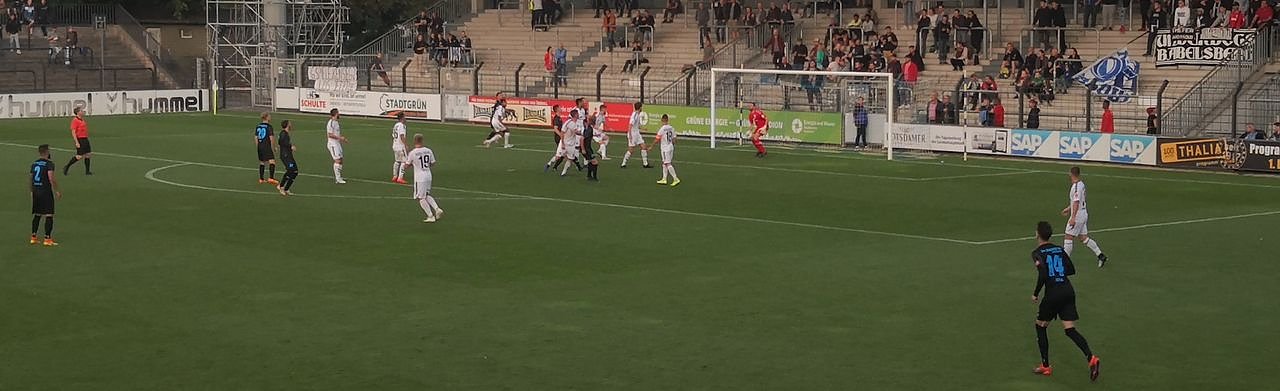1. Minute: Der Ball rollt in Babelsberg, die Hausherren stoßen an.
