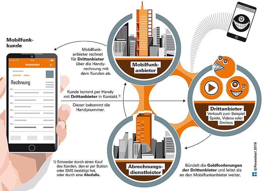 Drei Firmen sind am Geschäft mit Drittanbietern beteiligt. Und alle drei verdienen – auch an Abofallen: Mobilfunkfirma, Abrechnungsdienstleister und Drittanbieter.