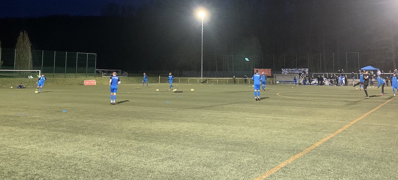 Herzlich willkommen aus dem AKS zu einem weiteren Flutlichtspiel auf dem Kunstrasenplatz. Die Mannschaften machen sich warm und in 30 Minuten wird es hier losgehen.