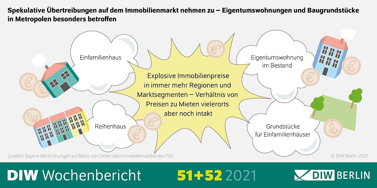 Die Immobilienpreise in Deutschland steigen auch in der Corona-Pandemie weiter. In immer mehr Regionen und Marktsegmenten kommt es dabei zu spekulativen Übertreibungen, insbesondere bei Eigentumswohnungen und Baugrundstücken in Metropolen wie Berlin, Hamburg und München. Dort, aber auch in anderen großen Städten sind in den nächsten Jahren Preiskorrekturen in größerem Ausmaß möglich...