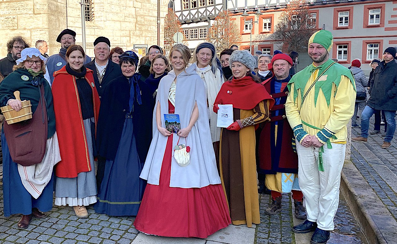 In einer launigen Begrüßung gab die Chefin der Zunft, Mary Fischer, die Devise für die nächste Zeit aus: nach der Blühendsten Stadt Europas und dem inoffiziellen Titel Schönste Stadt Deutschlands sei es an der Zeit sich endlich als schönste Stadt der Welt zu generieren. Bevor es aber auf die dreistündige Tour durch die Altstadt mit diversen Stationen ging, brachten die Versammelten Bürgermeister Matthias Reinz ein Ständchen, der am Freitag Geburtstag hatte und nicht auf die Führung verzichten wollte.