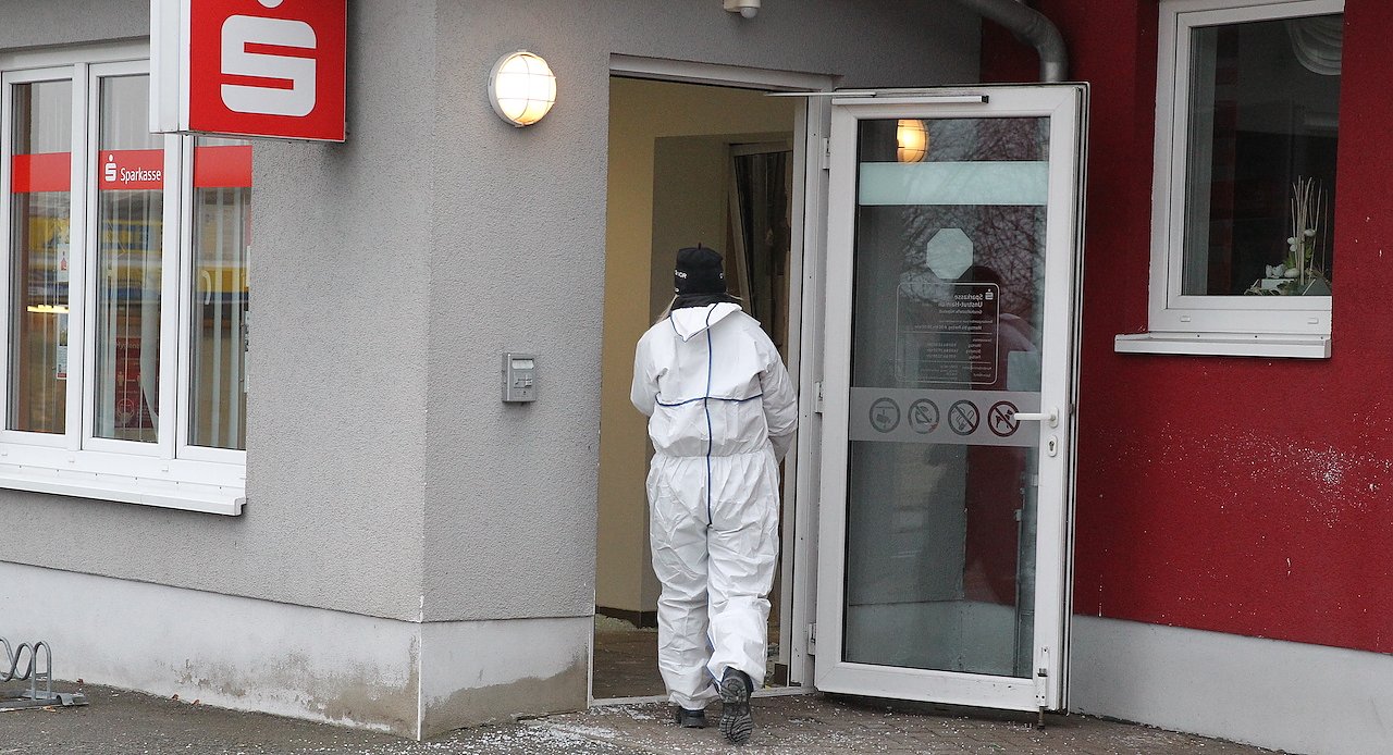 update: Mittlerweile steht fest, die Täter erbeuteten einen fünfstelligen Bargeldbetrag. Trotz sofortiger Großfahndung entkamen die Täter. Der entstandene Sachschaden wird auf ca. 80.000 Euro geschätzt.