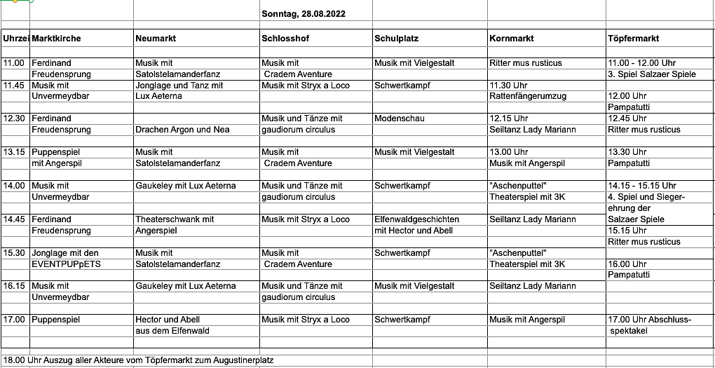 Seid ihr neugierig geworden, so kommet am 27. und 28. August nach Salzaha und feiert mit den Eingeborenen und Zugezogenen das 28. Mittelalterspectaculum.