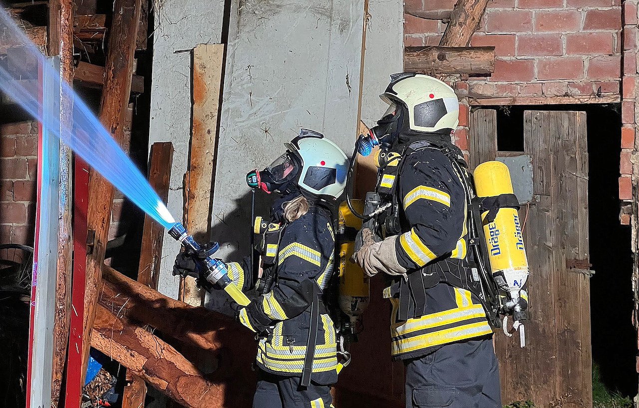 Bei Ankunft stellten die Kameraden der Feuerwehr fest, dass das Obergeschoss des Heubodens in Brand stand. Durch ein schnelles Eingreifen konnte der Brand gelöscht und somit ein Großbrand verhindert werden. Die Brandursache ist zur Zeit noch unklar, jedoch kann Brandstiftung nicht ausgeschlossen werden. Die Kriminalpolizei hat die Ermittlungen aufgenommen.