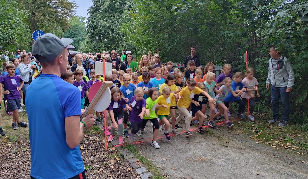 Vorher gab es noch eine bunte Erwärmung mit viel Bewegung, welche Lauf-Ass Marcel Krieghoff anleitete. Der mehrfache Gewinner zahlreicher Volksläufe und Mitglied der Deutschen Berglaufnationalmannschaft fungierte anschließend als Starter für die Kinder und Jugendlichen in den jeweiligen Wettkampfklassen.