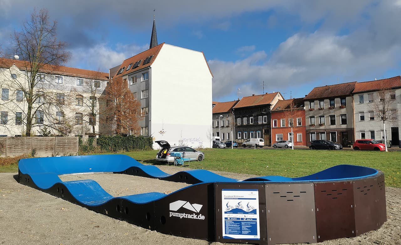 Die Entstehung einer solchen Anlage in Mühlhausen hatte der Stadtrat 2021 beschlossen. Eine vom Kinder- und Jugendbüro (KiJuB) 2022 durchgeführte Jugendbeteiligung hatte ergeben, dass die Jugendlichen sich diese am Schwanenteich wünschen. Das ist auch weiterhin geplant, jedoch dauert die Umsetzung aufgrund notwendiger Planungsverfahren noch einige Zeit – entstehen soll eine Pumptrack-Anlage hier als Teil eines Sportparks.