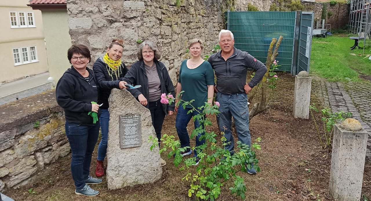 Einstmals pflanzten die Bad Langensalzaer Gästeführer sieben Rosen am Schlosshof. In letzter Zeit war die Ecke verwildert, nun wurde sie vom Unkraut befreit...