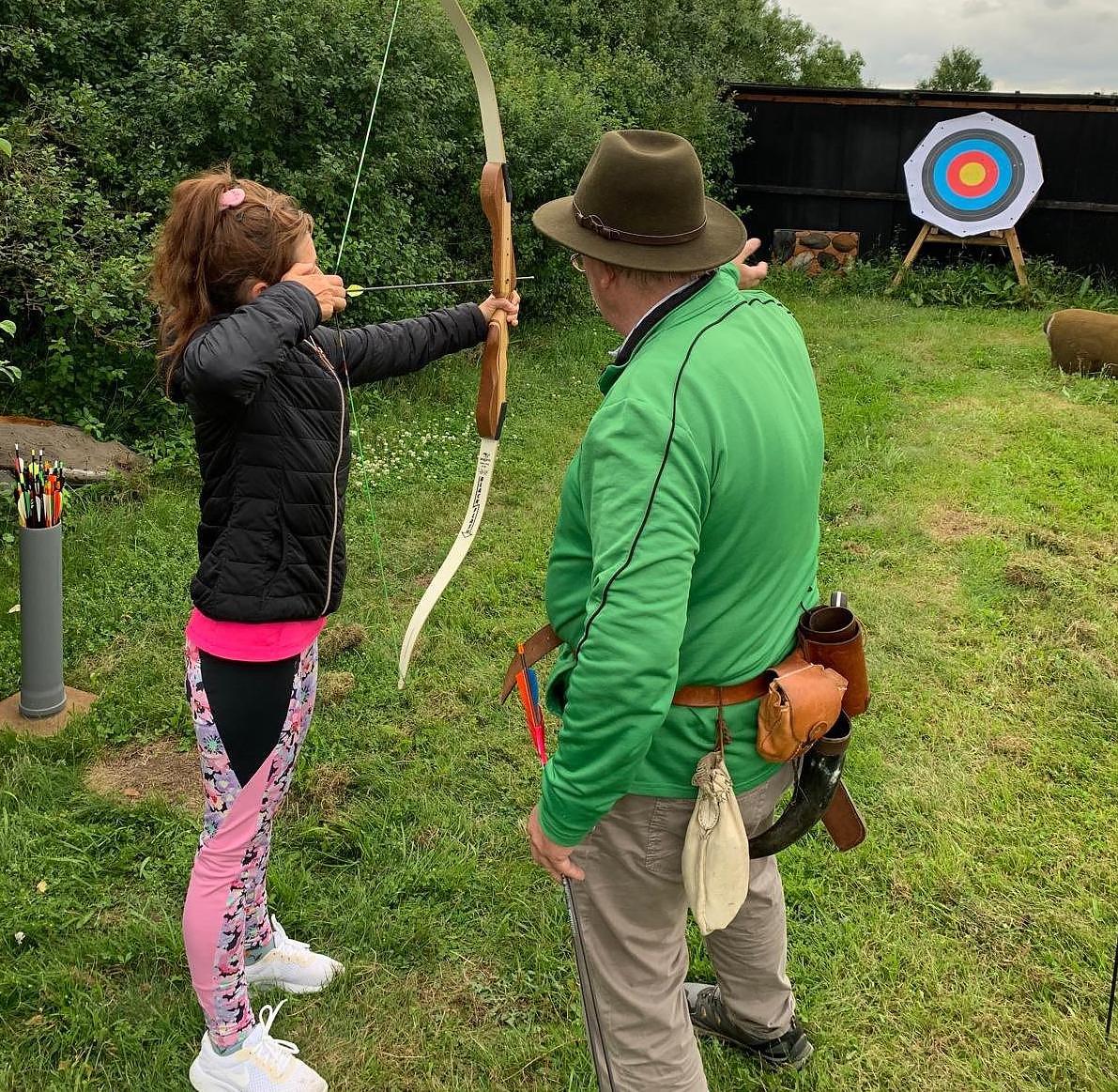Besucht wurde der Schießplatz der Bogenschützen, welcher sich zwischen dem Flugplatz und dem Böhmenteich befindet. Fachmännisch von Bernhard Schäfer in die Kunst des Bogenschießens eingeführt, schossen die Gästeführer einige Pfeile auf Zielscheiben und künstliche Tiere. Der Bogensportpark ist ein 3D-Parcours, welcher durch unwegsames Gelände führt. Deshalb bahnten sich die Gästeführer den Weg durchs hohe Gras oder das Gestrüpp und fanden immer wieder interessante Stellen.