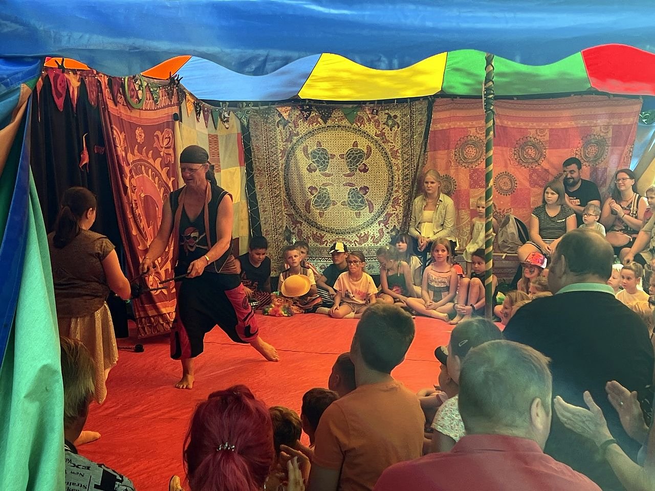 Am Mittwochabend habe es sogar einen Zirkusabend für die Erwachsenen gegeben, berichtet er. Und freut sich, dass diese Veranstaltung viele Neugierige ins Zelt lockte. Rhena, Jan und Joschka vom Zirkus hätten jede und jeden probieren lassen, welches Zirkustalent vielleicht ans Licht kommen möchte.
