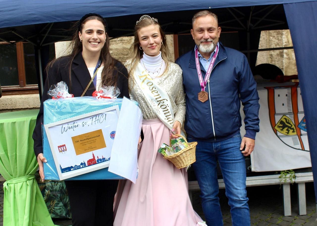Die THC-Gesellschafter mit Monique Reinz (l.), Rosenkönigin Maxima und Bürgermeister nebst Ex-Landrat und Neu-Vorstand beim THC, Harald Zanker (r.)  (Foto: Eva Maria Wiegand) Die THC-Gesellschafter mit Monique Reinz (l.), Rosenkönigin Maxima und Bürgermeister nebst Ex-Landrat und Neu-Vorstand beim THC, Harald Zanker (r.) (Foto: Eva Maria Wiegand)