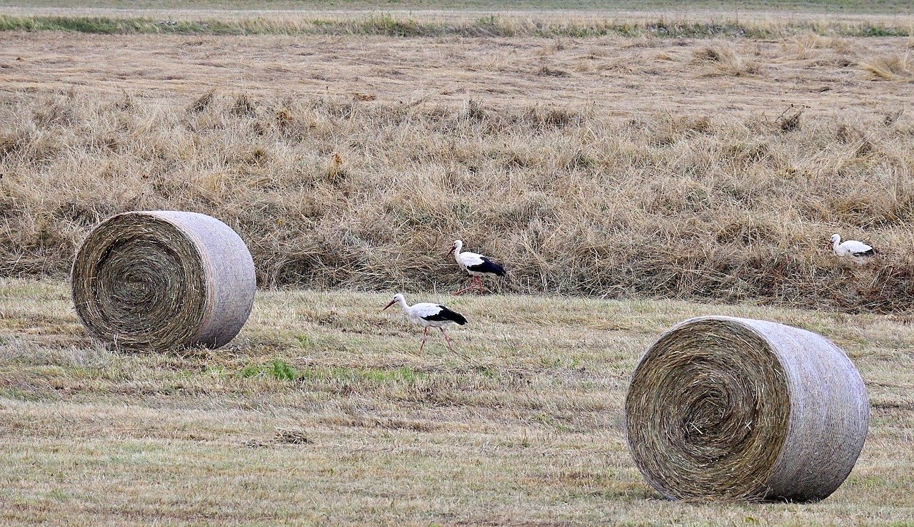 Wir bedanken uns bei Marco Gerlach aus Görsbach: "Blick über eine Wiese auf Uthleben" und Störche bei der Heuernte am Stausee Kelbra.