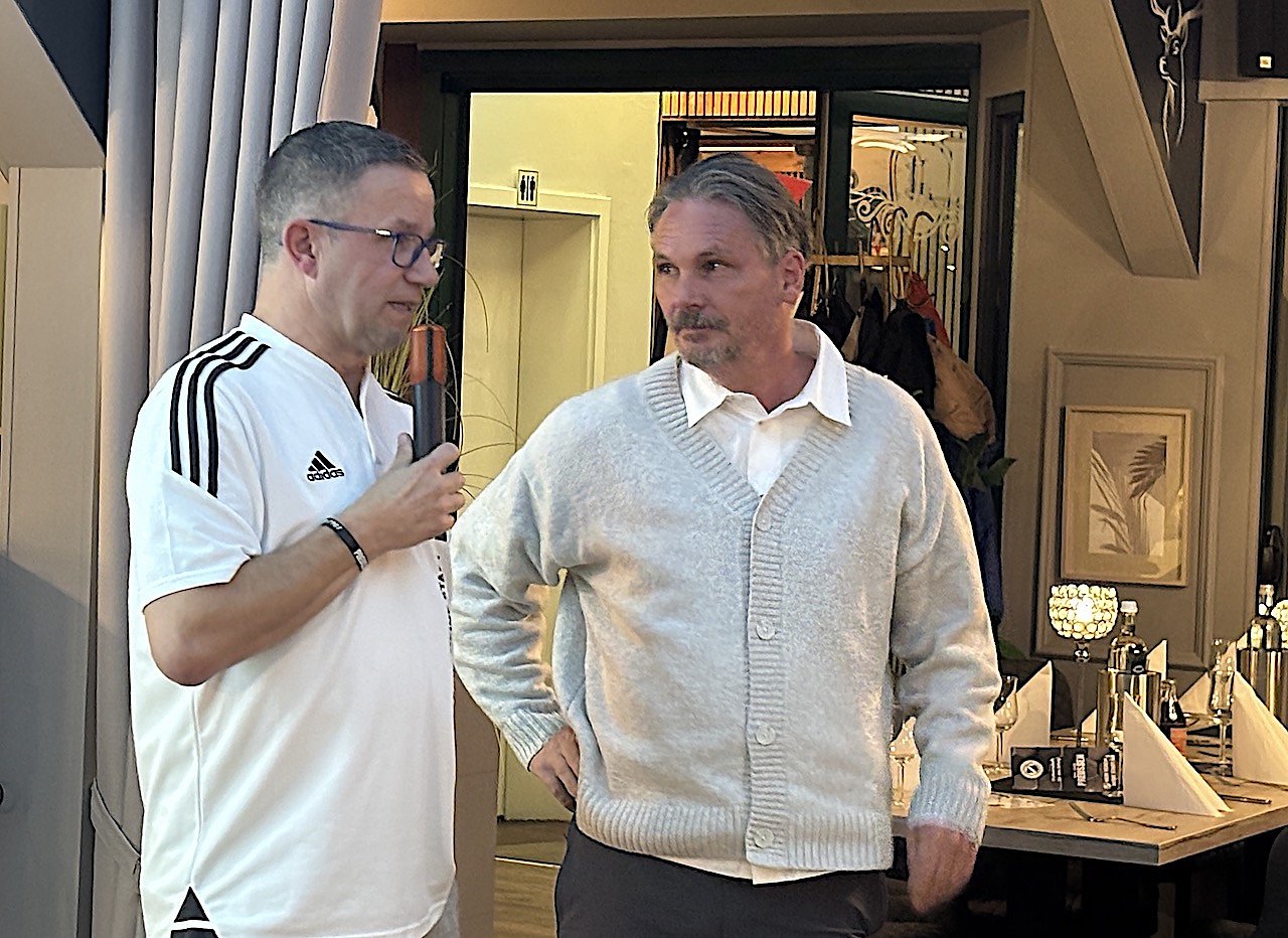 Sponsorenabend im Harth-haus: Gastgeber Toni Hyseni und Preußen-Präsident Benno Harbauer (Foto: oas)