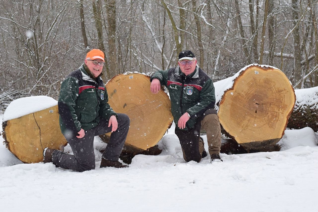 Eine Besonderheit zur diesjährigen Submission: Es gibt nicht nur eine Braut, sondern zwei Bräute! (Bei der Submission wird eine Braut gekürt – es ist der Stamm mit dem höchsten Festmeterpreis). Tatsächlich wurden durch einen niederländischen Furnierhersteller zwei Eichen mit exakt 3023 € beboten, die den Zuschlag erhielten. Die Besonderheit: Die eine Eiche kam aus dem Forstamt Bad Berka, die andere Eiche aus dem Nachbarforstamt Sondershausen. Die Leiter der Forstämter sind Brüder: Jan Klüßendorf und Uli Klüßendorf. (Foto: ThForst/Jan Böhm)