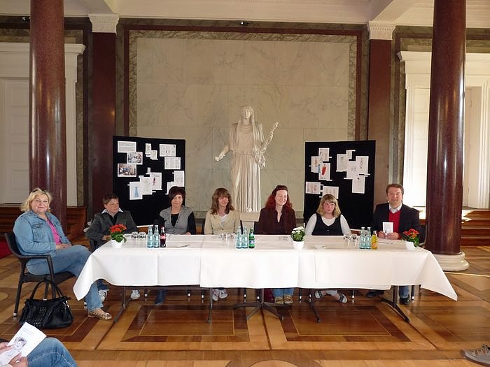 Während in den letzten Jahren immer nur ein Klasse in die Vorbereitungsarbeiten einbezogen worden waren (11. Klasse - kn berichtete), war es dieses Jahr anders. Insgesamt 12 Klassen aus den Klassenstufen 6 bis 12 waren in die Zusammenarbeit einbezogen worden, berichtete Bianca Sue Henne vom Jungen Theater in Nordhausen, die das Projekt begleitete. Neben dem Schulleiter Geschwister-Scholl-Gymnasiums, Dieter Strödter nahm auch die 1. Beigeordnete des Bürgermeisters von Sondershausen, Cornelia Kraffzick, an der heutigen Vernissage teil.