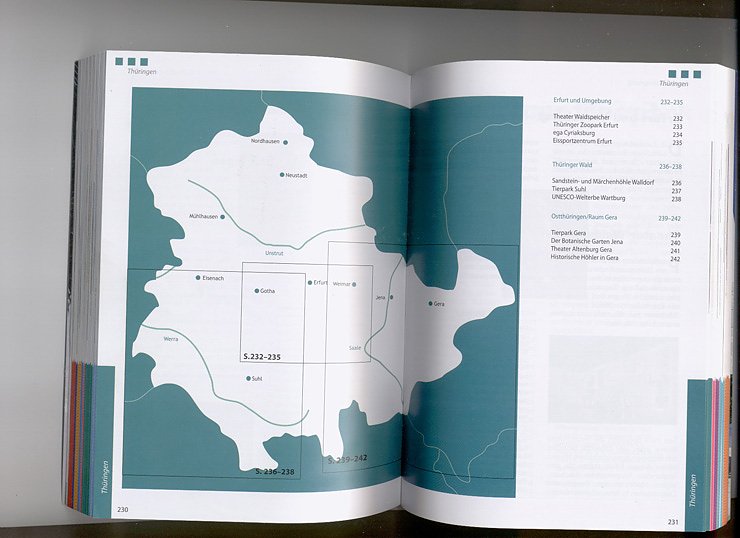 Aber das ist noch das kleinste Problem. Schwerer wirkt, dass der gesamte Norden Thüringens mit keiner Sehenswürdigkeit vertreten ist! Angefangen vom Baumkronenpfad über Tabakspeicher, Panoramamuseum (mit riesigem Rundgemälde), Kyffhäuserdenkmal bis hin zu einer der größten Modellbahnanlagen der Welt in Wiehe, nichts ist zu finden.