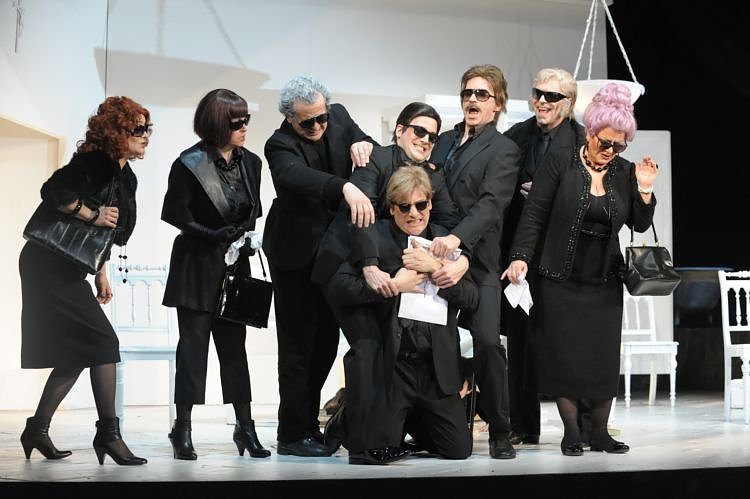 Solch ein Gerangel wie hier in Gianni Schicchi wird es im Vestibül hoffentlich nicht geben, wenn der Intendant zum Waffeleisen greift.
